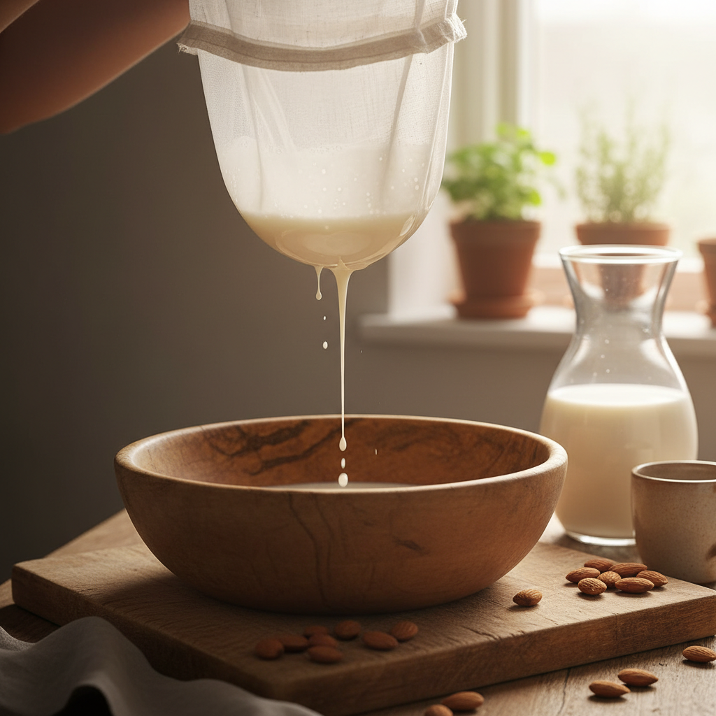 Neben einem leistungsstarken Mixer ist ein Nussmilchbeutel das wichtigste Werkzeug. Dieser Beutel dient dazu, die festen Bestandteile von der flüssigen Milch zu trennen. Ein feines Sieb oder ein Passiertuch kann ebenfalls verwendet werden, erzielt aber oft nicht die gleiche Feinheit wie ein spezieller Beutel.